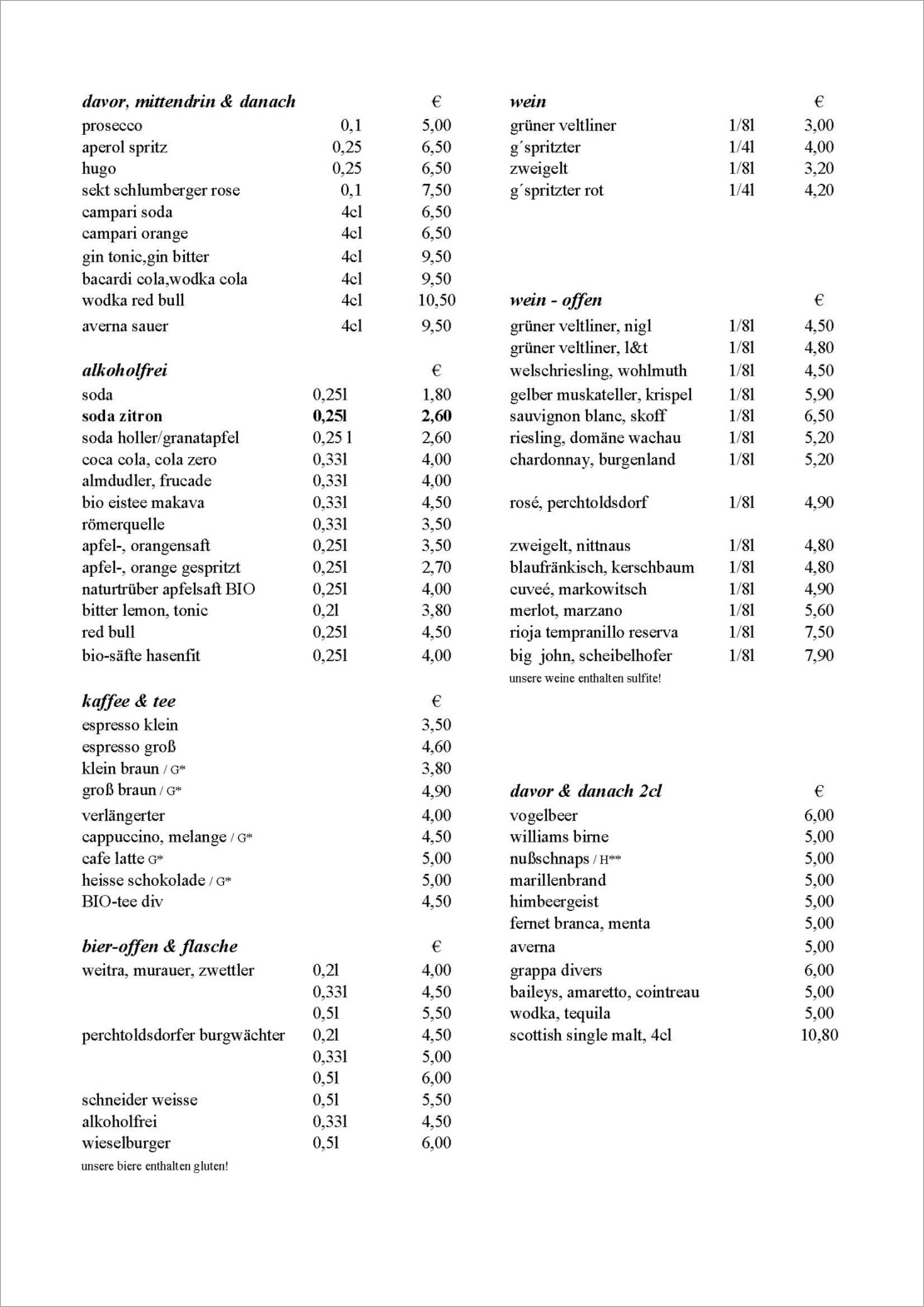 Getränkekarte